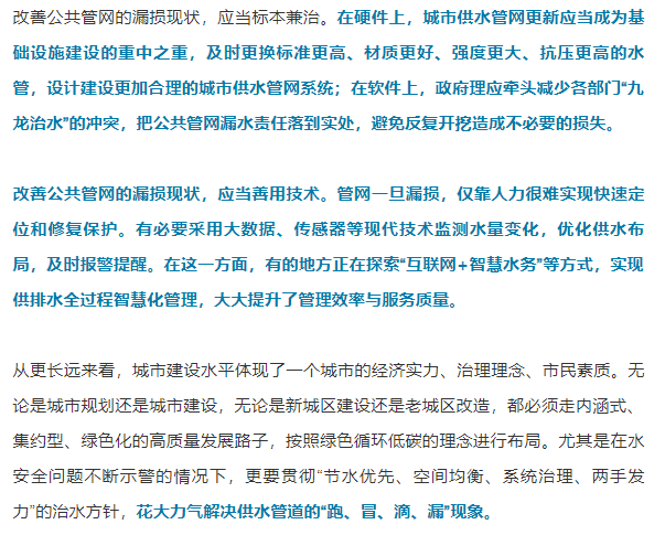 人民网:花大力气解决供水管道的“跑、冒、滴、漏”现象